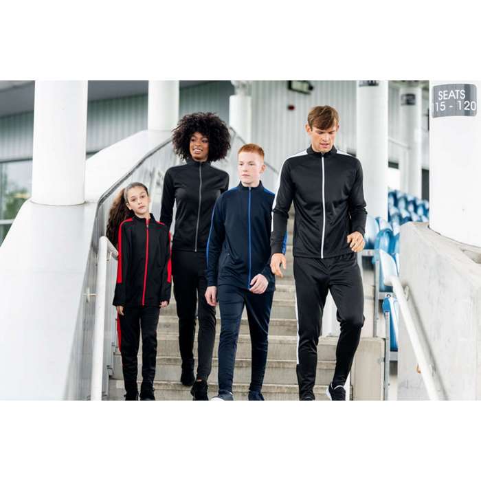 material: 100% poliester Interlock, 250 g/m2, marimi: XXS - 3XL, elemente colorate contrastante pe exteriorul manecilor, fermoar de culoare contrastanta, buzunare laterale cu fermoar, guler inalt dintr-o bucata, 1x1 mansete striate, glisoare cu blocare semi-automata la toate fermoarele eticheta detasabila