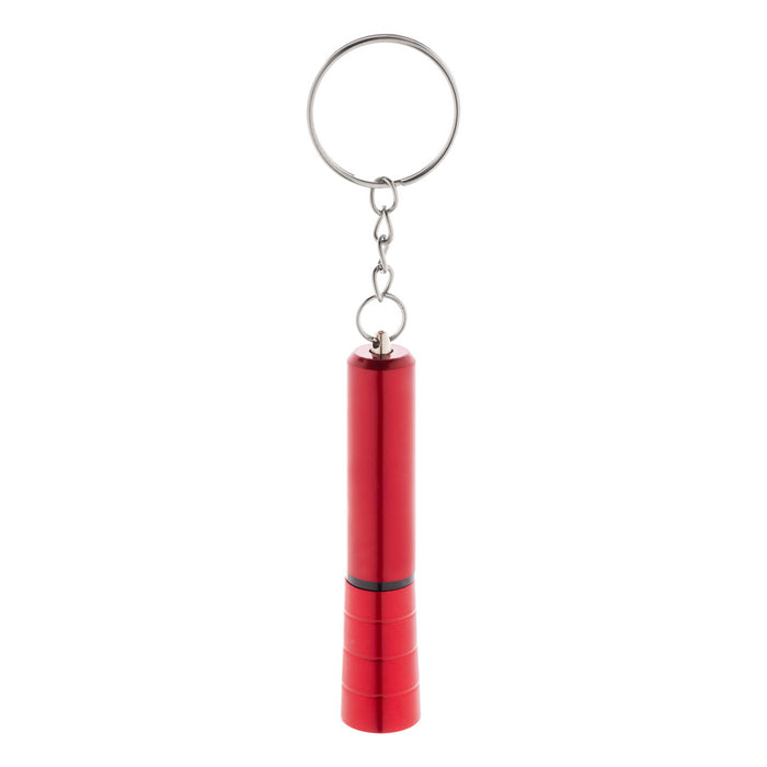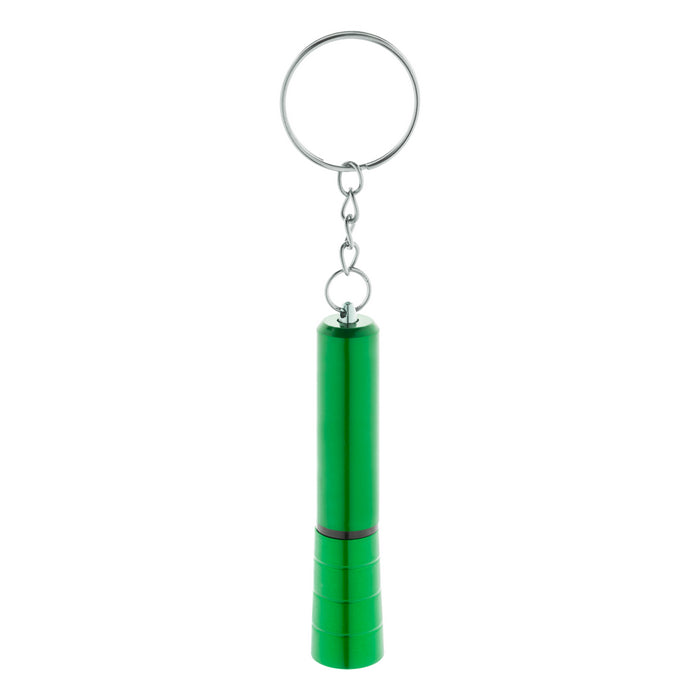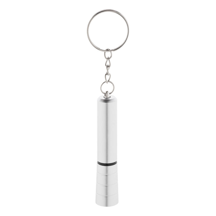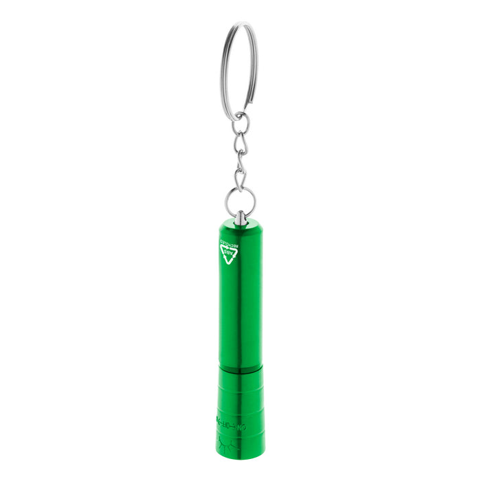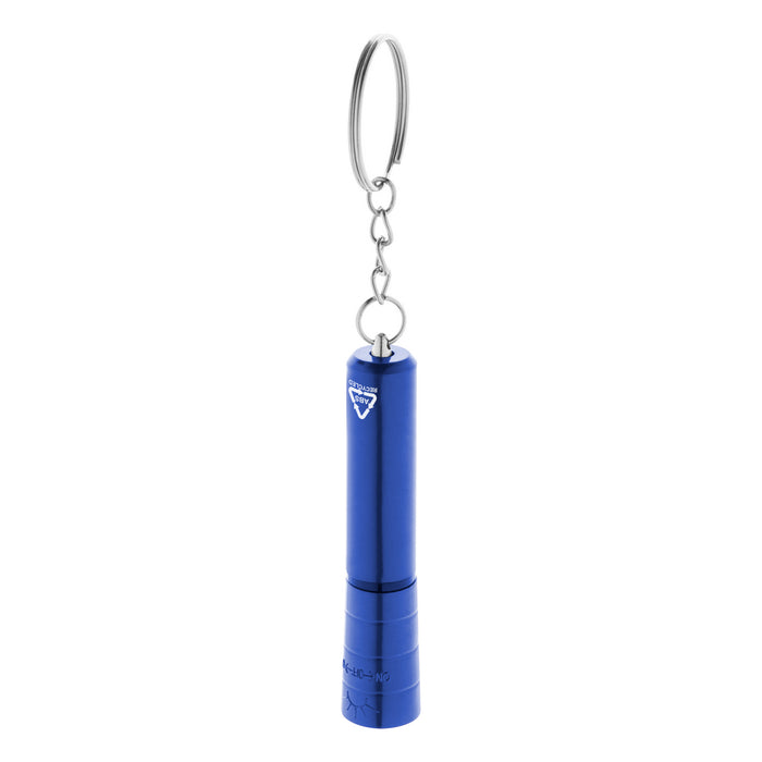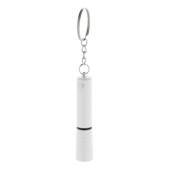 Mini lanterna din plastic ABS reciclat, cu 1 LED, finisaj metalic si breloc metalic. Cu baterie tip buton.