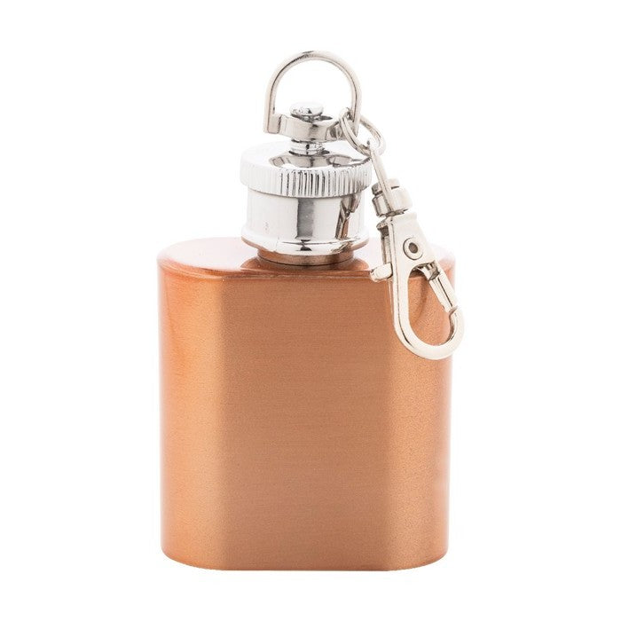 Mini-plosca din otel inoxidabil reciclat, cu finisaj metalic stralucitor si inel de chei cu carabina. 30 ml., material: lemn reciclat, dimensiune: 42×58×19 mm