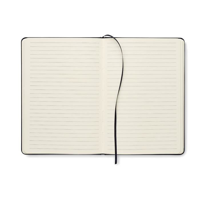 , Set de notebook A5 cu coperta rigida 600D RPET. Banda elastica frontala cu functie de suport pentru telefon si bucla frontala pentru stilou cu stilou push ball, detaliu de prindere din bambus. Legat in carcasa. 160 de pagini liniate din hartie reciclata (80 de coli). include plic pe partea din spate. Curea elastica de inchidere. Semn de carte cu panglica. Cerneala albastra., material: RPET, dimensiune: 14.5x1.2x21cm