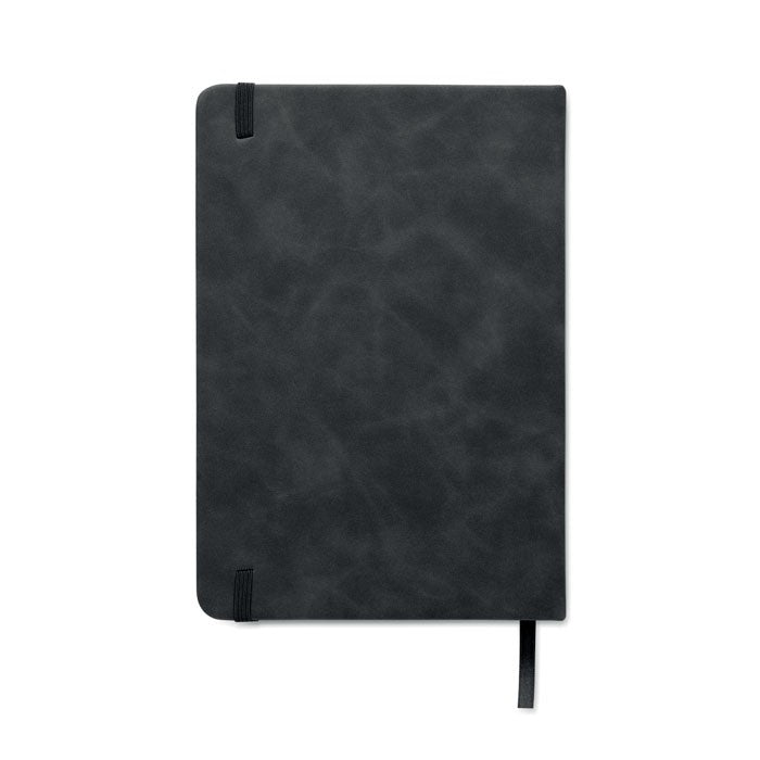 Caiet A5 din PU 40% reciclat post consum fumuriu, coperta PU tare, 60% PU, 160 de pagini liniatura dictando, hartie reciclata 70 gr/mp (80 de coli), semn de carte din poliester de aceeasi culoare, dimensiune: 21,2 x 14,6 x 1,6 cm, material: PU