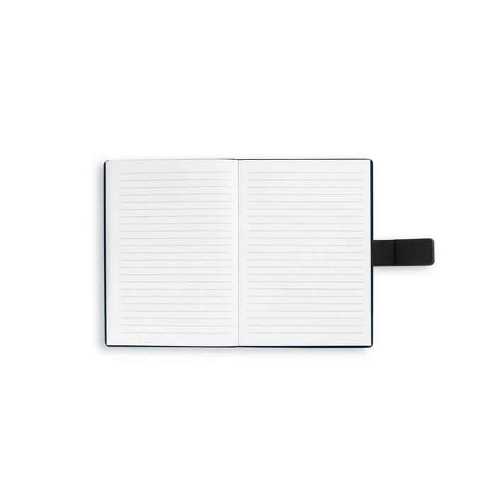 Caiet A5 cu un design modern, conceput pentru a fi versatil in ziua ta de lucru. Compus dintr-o coperta rigida realizata din 80% materiale reciclate (poliester reciclat si PU reciclat), care este impartita in doua blocuri: primul cu 128 de pagini liniate si al doilea cu 128 de pagini simple, ambele realizate din material certificat FSC™ si alte materiale controlate. Are o panglica pentru inchiderea magnetica a caietului. 150 x 210 mm