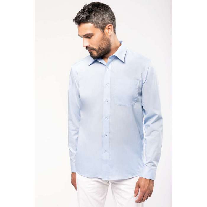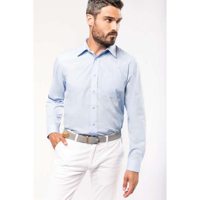 material: 65% poliester, 35% poplin din bumbac, 110 g/m2, marimi: XS - 6XL, tesatura usor de intretinut, cusatura laterala, guler intarit, evazat, nasturi de culoare asortata, buzunar rotunjit la piept, in partea stanga, element dublu de intarire la spate, cusaturi intoarse, mansete cu nasture, rotunjite, reglabile, cu fente, 2 nasturi de rezerva, certificat conform STANDARD 100 de OEKO-TEX® Nr. CQ1007/8, IFTH
