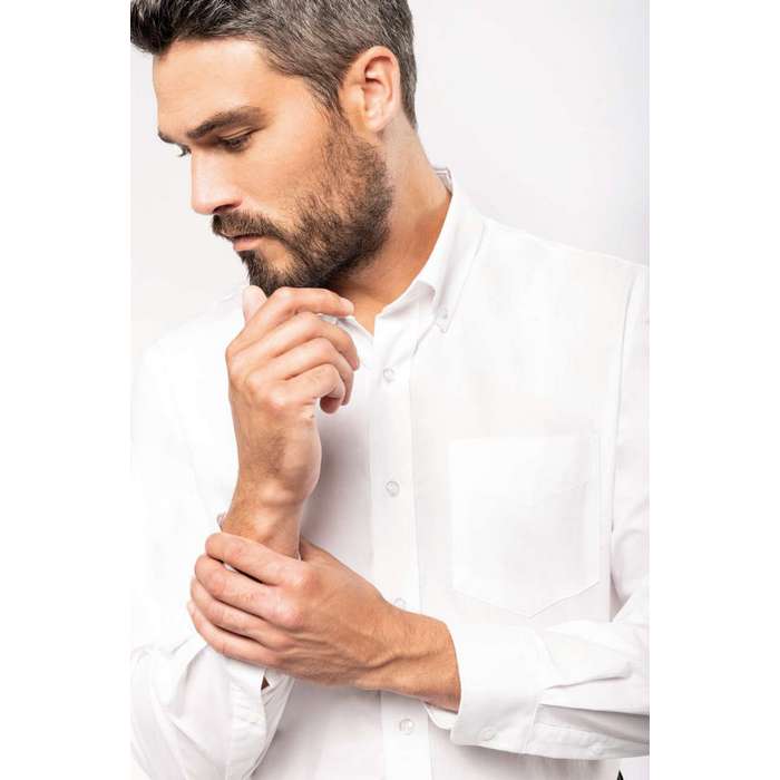 material: 70% bumbac Oxford, 30% poliester, 135 g/m2, marimi: S - 6XL, tesatura usor de intretinut, cusatura laterala, guler cu nasturi sub fiecare varf, nasturi de culoare asortata, buzunar in forma de V in stanga pieptului, element dublu de intarire la spate cu 2 pliuri laterale, mansete cu nasture, rotunjite, reglabile, cu fenta cu nasture, 2 nasturi de rezerva, parte inferioara formata, certificat de OEKO-TEX® conform STANDARD 100, nr. CQ1007/7, IFTH