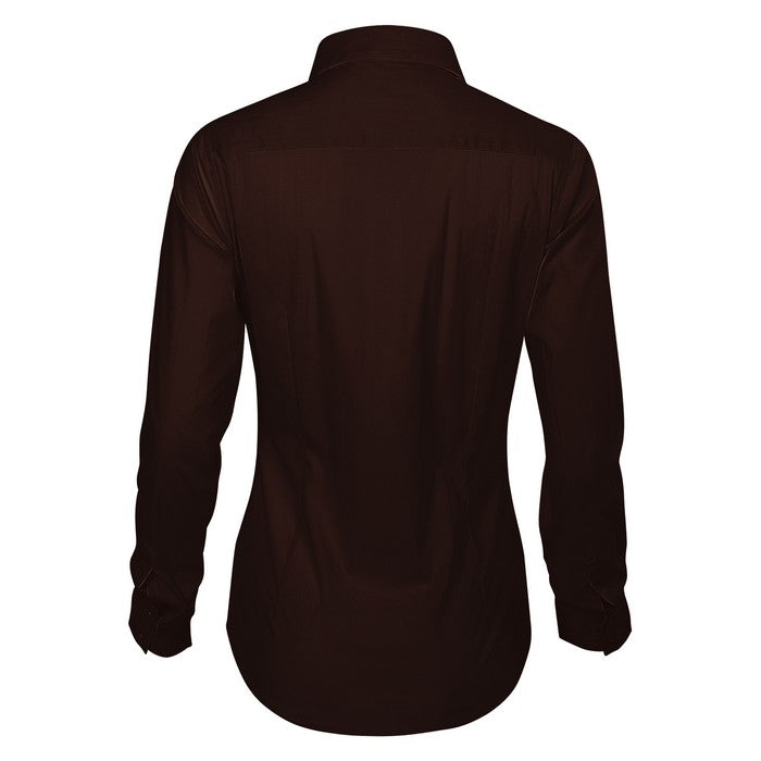 material: 110 g/mp, textura de panza, 73 % bumbac, 24 % poliamida, 3 % elastan. Marimi S - 2XL. Model cambrat ce prezinta cusaturi laterale, partea din spate este prevazuta cu platca, cusaturi la nivelul pieptului si taliei, gulerul camasii este format din doua parti, marginea frontala este prevazuta cu fenta, maneci lungi cu mansete cu o croiala unghiulara si inchidere cu doi nasturi, nasturi perla de culoarea materialului de baza (1nasture de rezerva), marginea inferioara este curbata. Modelul corespondent barbatesc are codul 262 colored