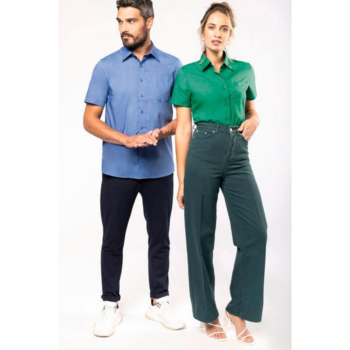 material: 65% poliester, 35% poplin din bumbac, 110 g/m2, marimi: XS - 4XL, tesatura usor de intretinut, guler moale, nasturi de culoare asortata, buzunar in forma de V la piept, in partea stanga, 1 nasture de rezerva, cusatura laterala, parte inferioara formata, certificat conform STANDARD 100 de OEKO-TEX® Nr. CQ1007/8, IFTH