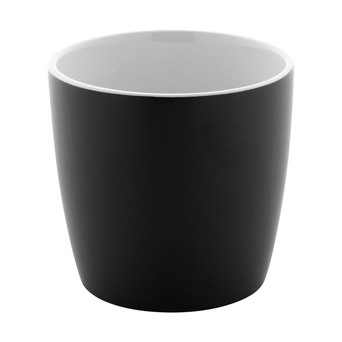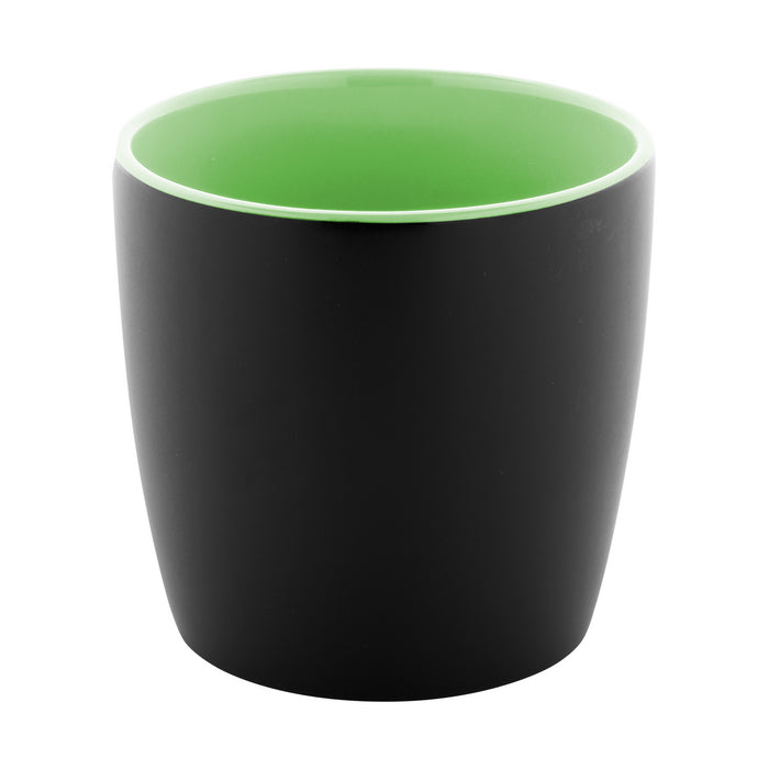 Cana din ceramica de inalta calitate, cu exterior negru mat si finisaj interior colorat lucios, 300 ml. in cutie de hartie kraft.
