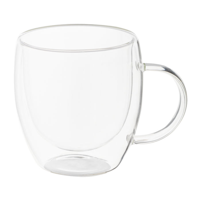 Cana termica din sticla borosilicata, cu perete dublu, cu maner si capac din bambus, 250 ml. in cutie de hartie kraft.
