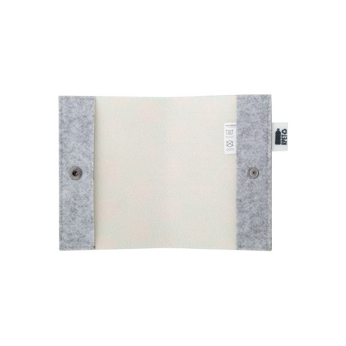 Husa pentru pasaport, din pasla RPET, realizata la comanda, cu husa imprimata color si inchidere cu capsa. cu eticheta distinctiva RPET. Pretul include imprimarea prin sublimare. MOQ: 50 buc., material: fetru reciclat, dimensiune: 105×145×12 mm