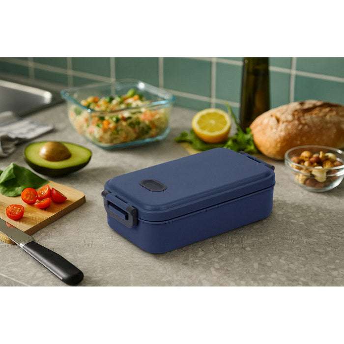 Cutie ermetica din PP cu compartiment pentru organizarea meselor. Capacul are o supapa cu doua pozitii (deschis si inchis), ceea ce il face sigur pentru cuptorul cu microunde. Se poate spala si in masina de spalat vase. Capacitate de pana la 900 ml, dimensiune: 213 x 117 x 60 mm, material: -