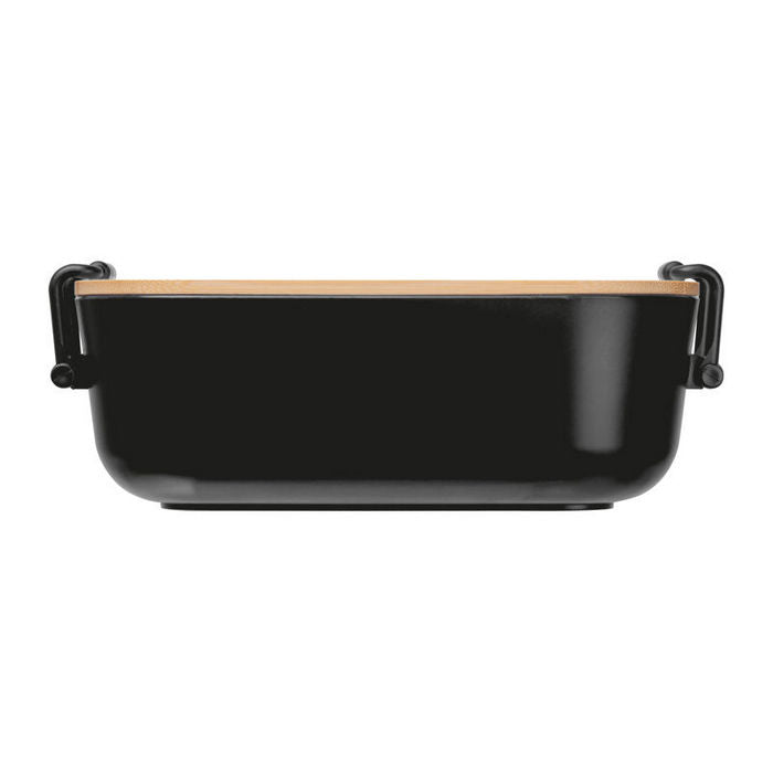 Cutie pentru alimente din plastic cu capac din bambus si inchidere cu clema, care pastreaza alimentele in conditii de siguranta. Cu o capacitate de 750 ml, ofera spatiu suficient pentru diverse feluri de mancare, dimensiune: 19,5 x 10,9 x 7,2 cm