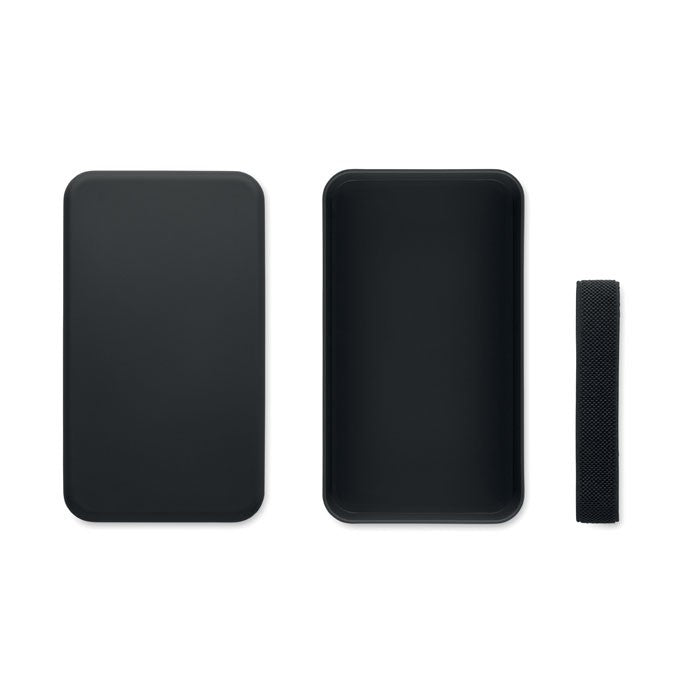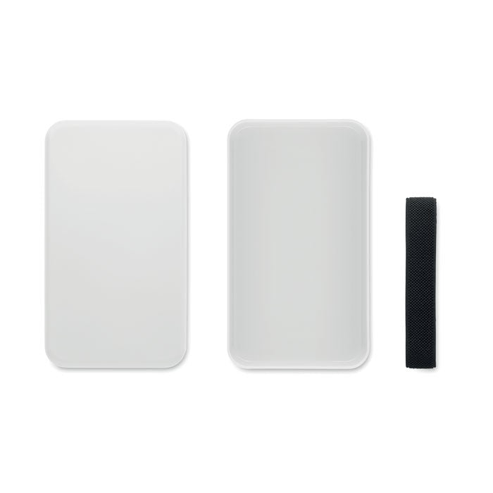 Cutie de pranz din PP, inchidere cu banda elastica RPET. Capacitate: 750 ml, dimensiune: 19,4 x 11 x 6 cm, material: polipropilena.
