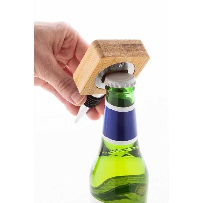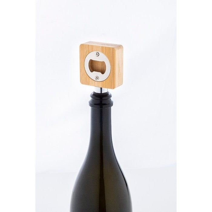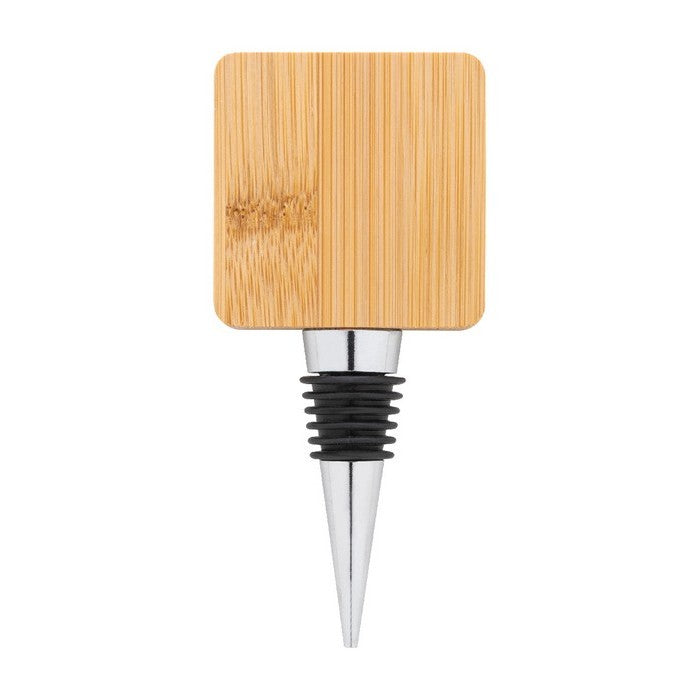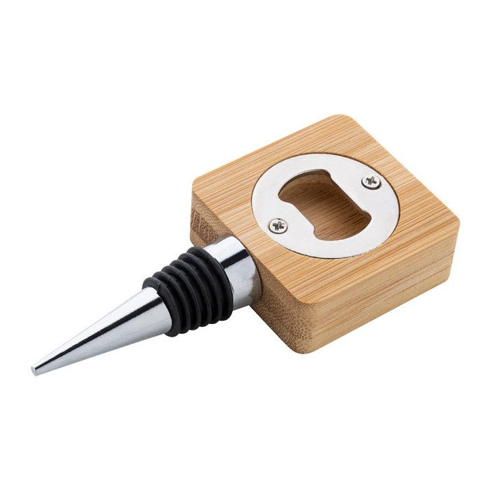 Dop metalic pentru sticle de vin, cu Desfacator de sticle patrat din bambus., material: lemn+bambus, dimensiune: 55×115×20 mm