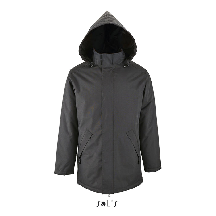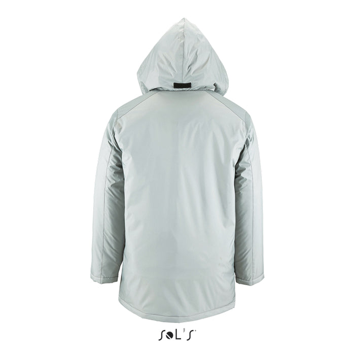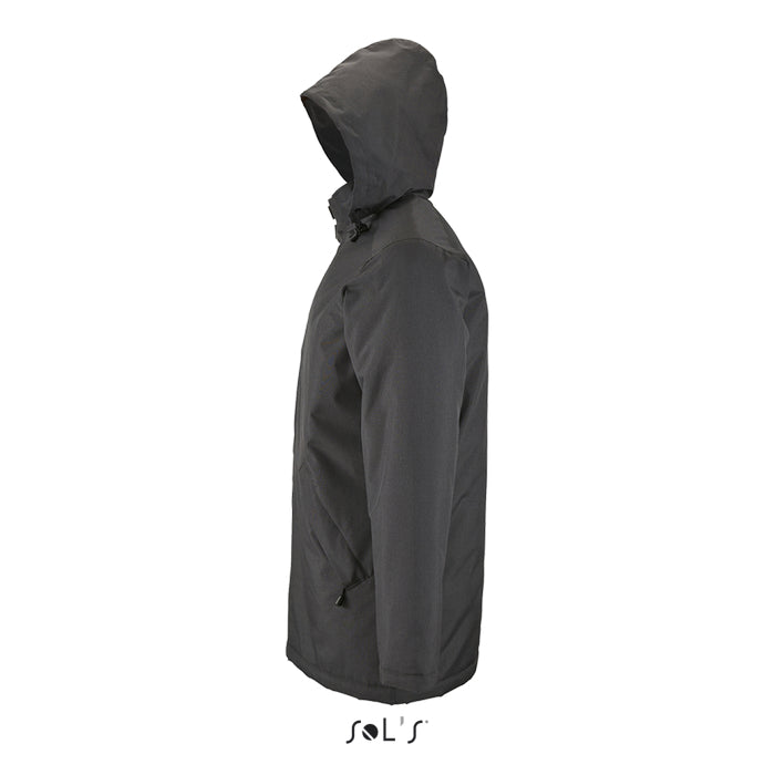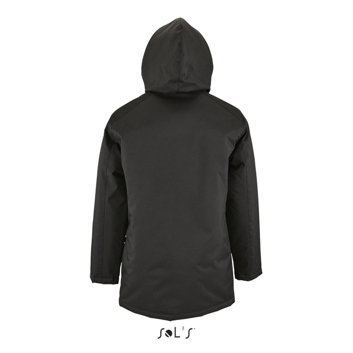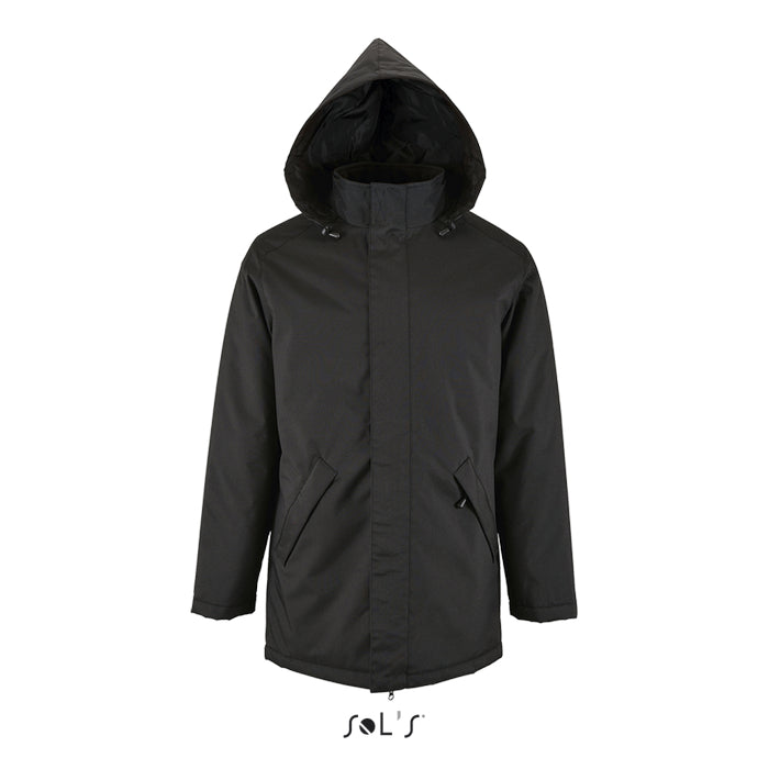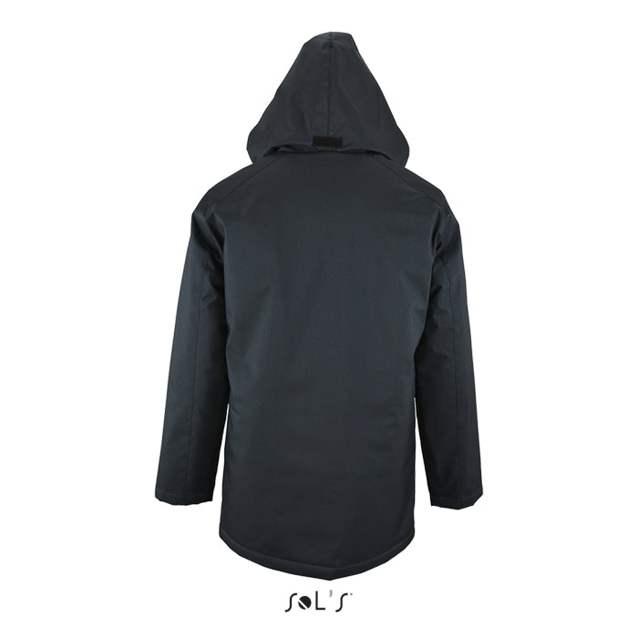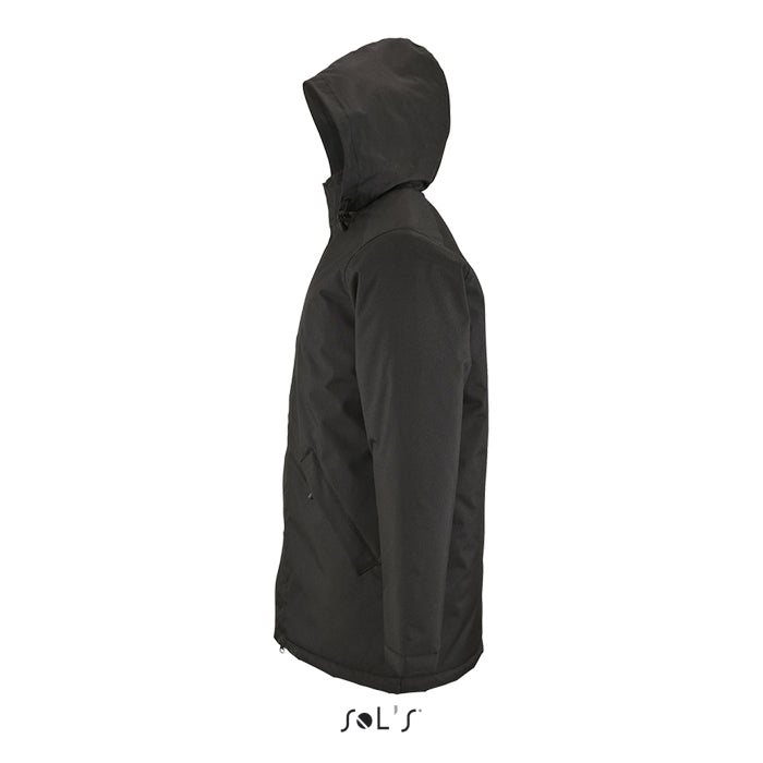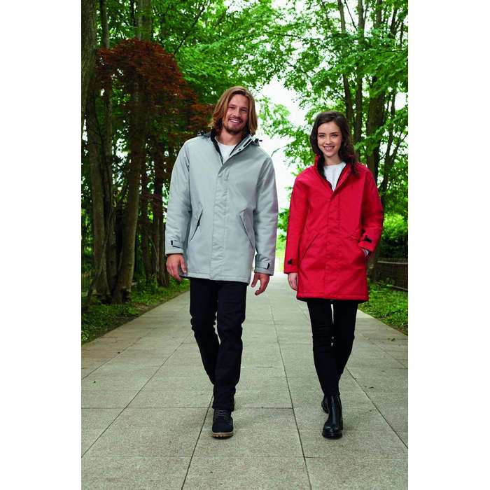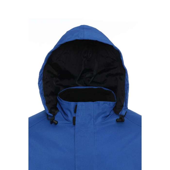 material: 100% poliester - acoperire din PVC, captuseala si umplutura: 100% poliester, marimi: XS - 4XL, deschidere cu fermoar cu glisor dublu si fenta cu benzi cu scai si capse de prindere ascunse, gluga in interiorul gulerului, guler captusit cu polar in interior, 2 buzunare exterioare cu fermoar cu clape, 1 buzunar interior, elemente de strangere a mansetelor, eticheta detasabila