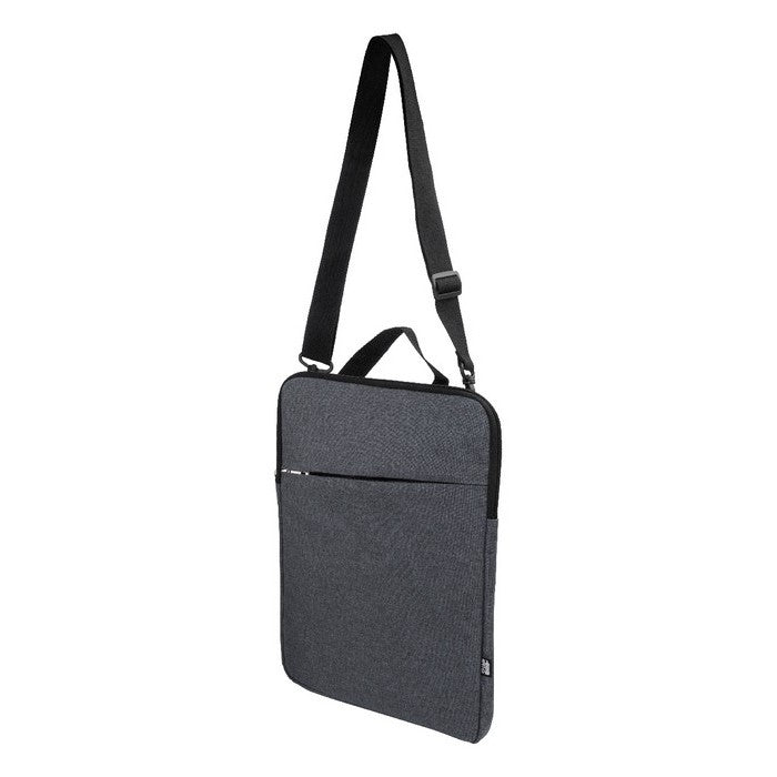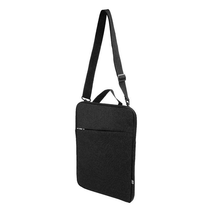 Geanta de umar, captusita, pentru documente sau laptop, din poliester 600D RPET, cu compartiment cu fermoar si buzunar frontal cu fermoar. Potrivita pentru laptopuri de pana la 15". cu curea de umar reglabila in pozitie verticala si orizontala. cu eticheta distinctiva RPET., material: 600D poliester reciclat, dimensiune: 260×375×15 mm