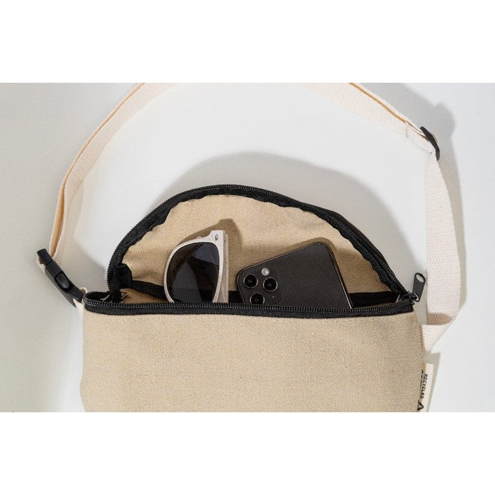 Borseta din panza reciclata, cu compartiment cu fermoar si curea reglabila. 70% bumbac reciclat si 30% poliester reciclat. cu eticheta distinctiva din bumbac reciclat., material: bumbac reciclat+poliester reciclat, dimensiune: 250×170×80 mm