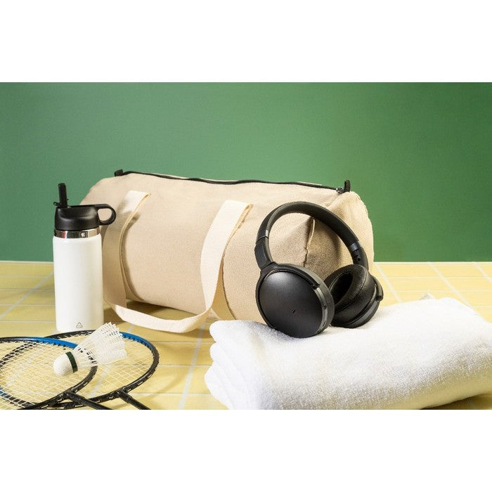 Geanta sport din panza reciclata, cu compartiment principal cu fermoar, buzunar interior cu fermoar si manere lungi. 70% bumbac reciclat si 30% poliester reciclat. cu eticheta distinctiva din bumbac reciclat., material: bumbac reciclat+poliester reciclat, dimensiune: ø250×500 mm