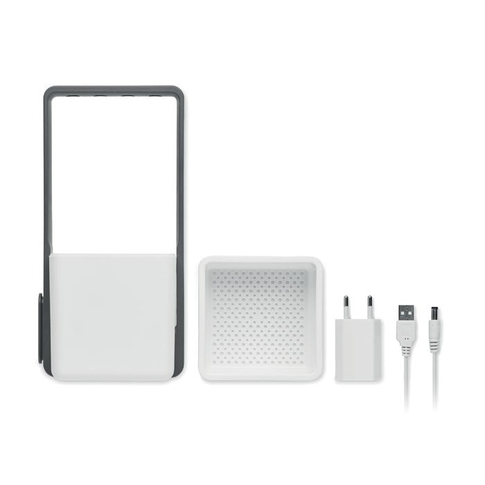 Ghiveci de interior cu 4 LED-uri, din PP si ABS. Include vas, filtru si cablu USB, adaptor A/C. Intrare de joasa tensiune: 5V, dimensiune: 11 x 9,4 x 22 cm, material: ABS