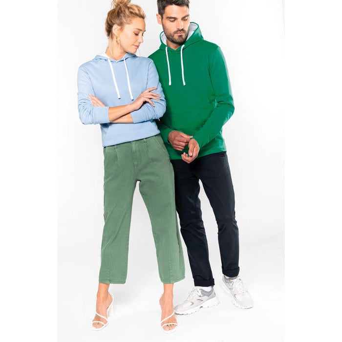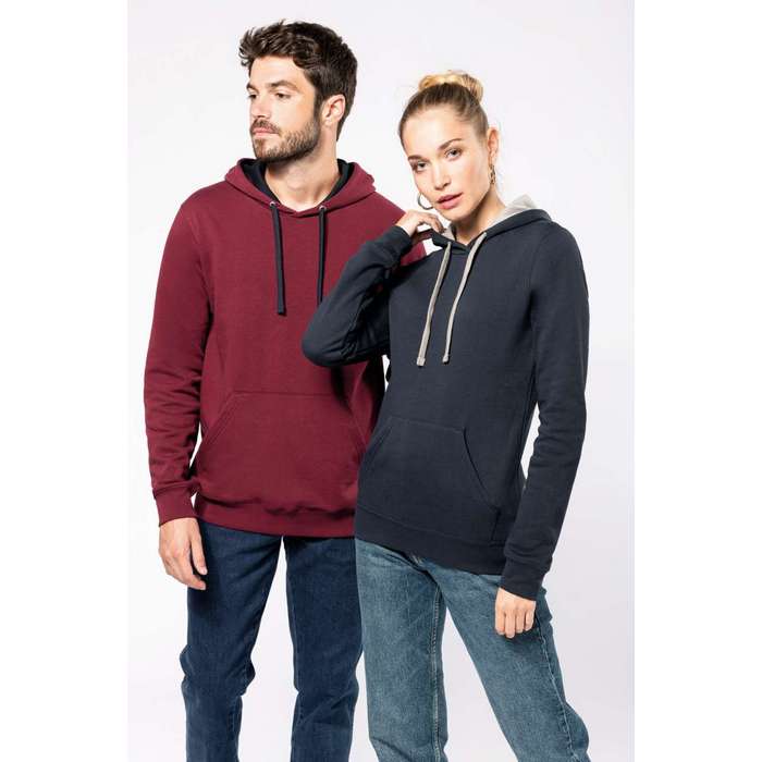 material: 80% bumbac pieptanat, 20% poliester (gri Oxford: 76% bumbac pieptanat / 21% poliester / 3% viscoza), 280 g/m2, marimi: XS - 4XL, polar flausat, buzunar tip marsupiu cu deschidere pentru casti, mansete si banda de talie cu striuri, gluga cu captuseala contrastanta, cu snur, cusatura laterala, certificat conform STANDARD 100 de OEKO-TEX® Nr. CQ1007/7, IFTH