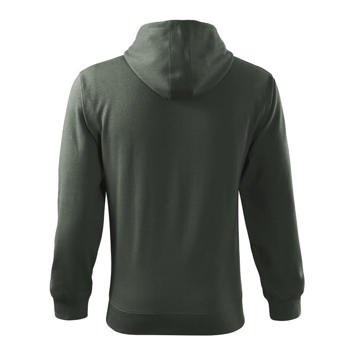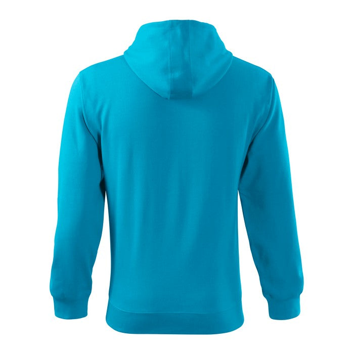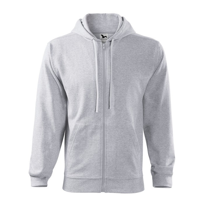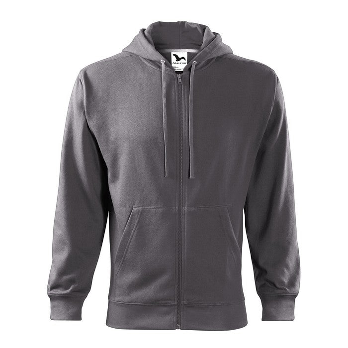 material: 300 g/mp, French terry, partea interioara pieptanata, 65 % bumbac, 35 % poliester (compozitia culorii 12 poate sa fie diferita – 85 % bumbac si 15 % vascoza). Marimi S - 3XL. Hanorac cu gluga si fermoar pe toata lungimea, doua buzunare frontale, gluga este captusita cu tesatura tip Single Jersey, si prezinta snur de reglare, tivul de la baza si mansetele manecilor din material raiat 2:2 cu adaos de 5 % elastan, la nivelul umerilor si a buzunarului are cusatura decorativa, partea interioara a gulerului prezinta banda de intarire. Modelul corespondent de dama are codul 411 colored si cel de copii are codul 412 colored
