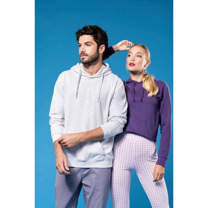 material: 80% bumbac, 20% poliester, 280 g/m2, marimi: XS - 2XL, polar flausat, maneci cusute la umar, gluga captusita si cu snur de culoare asortata, buzunare tip marsupiu, mansete si tiv cu striuri, tubular, certificat conform STANDARD 100 de OEKO-TEX® Nr. CQ1007/7, IFTH, diferente de culoare pot aparea la produsele gri inchis si albastru regal deschis