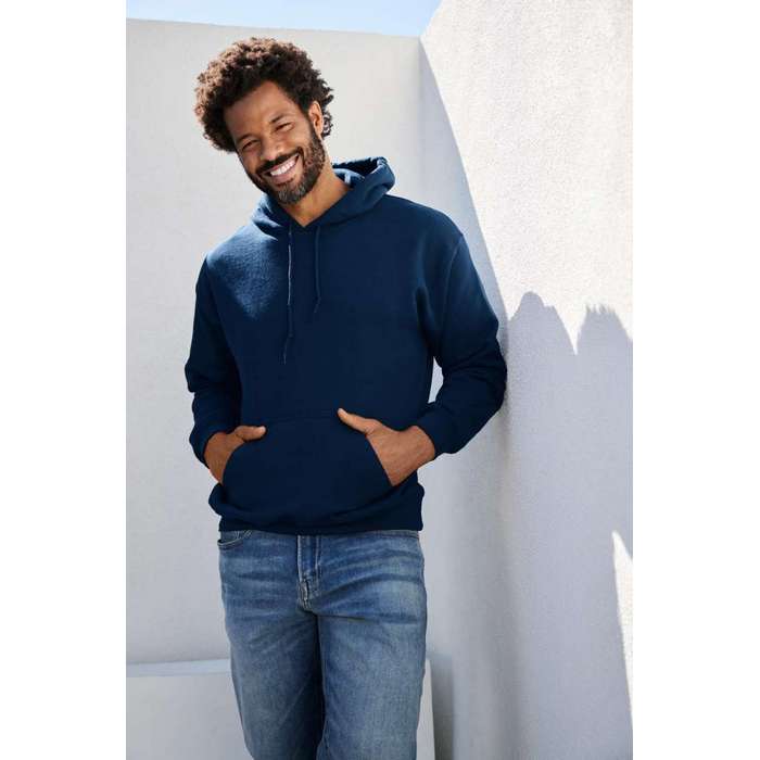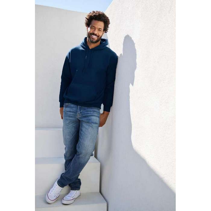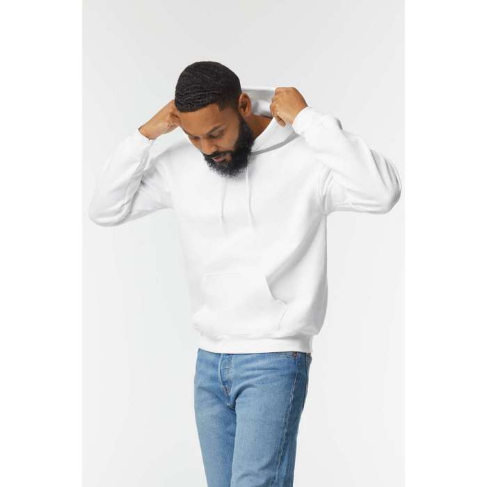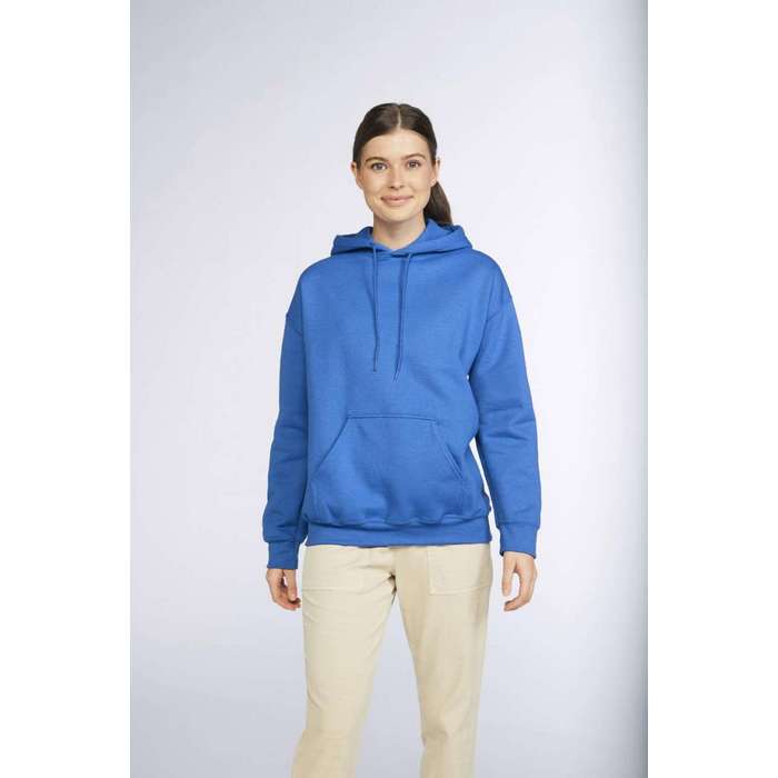 material: 50% bumbac SUA, 50% poliester, 305,0 g/mp (alb 287,0 g/mp), marimi: S - 2XL, material DryBlend care elimina umezeala si confera confort si raceste, preferat de decoratori pentru imbracaminte de lucru si sporturi de echipa, gluga din material dublu, cu snur de culoare asortata, buzunar tip marsupiu, 1 x 1 striuri cu Spandex pentru o elasticitate si revenire mai bune, body cu croiala clasica, fara cusaturi laterale, eticheta detasabila de inalta performanta; trecerea la materiale reciclate