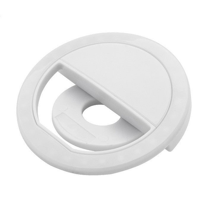 Inel luminos pentru selfie-uri, din ABS reciclat, cu 28 de LED-uri, pentru telefoane mobile. cu 3 niveluri de luminozitate reglabile si baterie reincarcabila incorporata (150 mAh). Include cablu de incarcare USB., material: ABS reciclat, dimensiune: ø85×27 mm