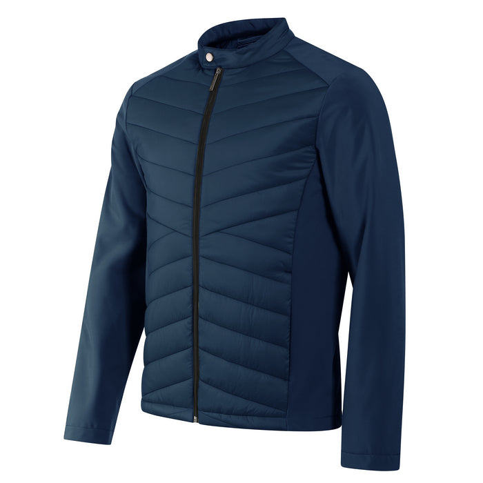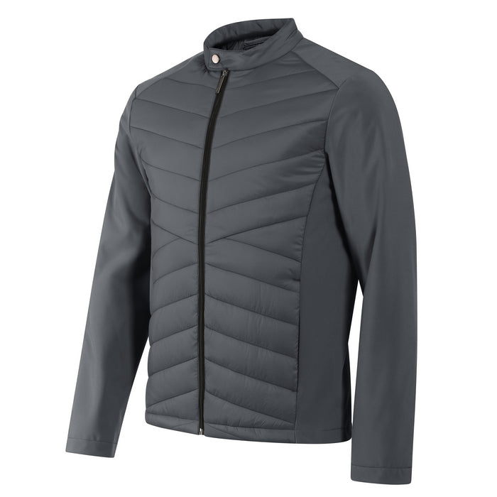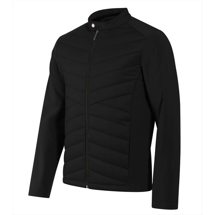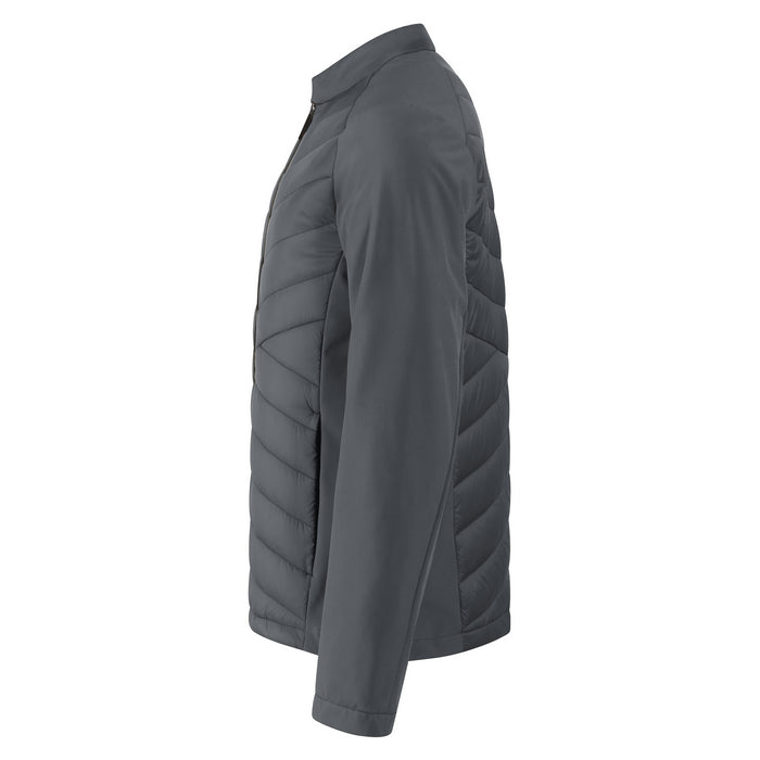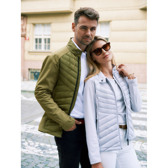 material: panza 100 % poliamida, tratament hidrofug, vata de umplutura: 100 % poliester, softshell: 90 % poliester, 10 % elastan, tratament hidrofug, captuseala: 100 % poliester. Marimi M - 3XL. Combinatie de material matlasat si softshell, croiala ce prezinta cusaturi laterale, guler ridicat cu nasture, fermoar spiralat pe toata lungimea, buzunare laterale cu fermoar spiralat, buzunar aplicat pe interior la nivelul pieptului, acces in vederea personalizarii in partea din spate a captuselii. Modelul corespondent de dama are codul 556 colored.