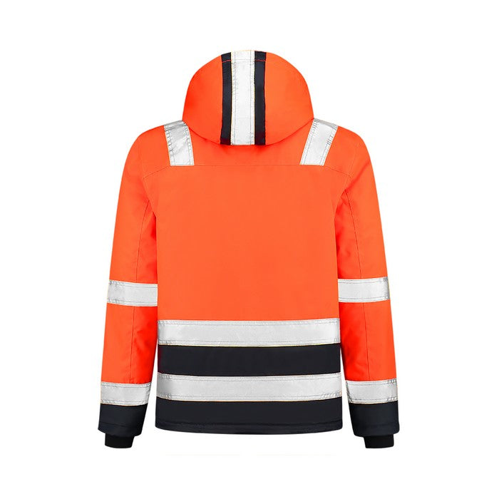 material: 200 g/mp, Oxford, 100 % poliester, imbracaminte de vizibilitate ridicata, material impermeabil, anti-vant si imperrespirabil, hidrofug, benzi reflectorizante, gluga detasabila, fermoar modelat pe toata lungimea cu clapa si protectie pentru barbie, 2 buzunare frontale cu sistem velcro si clapa, 3 buzunare aplicate pe interior la nivelul pieptului, tivurile manecilor sunt ajustabile prin sistemul velcro, marginea manecii prezinta gaura pentru degetul mare, tivul inferior este prevazut cu snur elastic, acces in vederea personalizarii in partea din spate a captuselii, partea din spate poate fi prelungita, model conform cu standardele EN ISO 20 471:2013 (clasa 2), EN 343:2003 (clasa 3:1), Eticheta: textila, Personalizare: broderie, transfer, marimi: M - 4XL