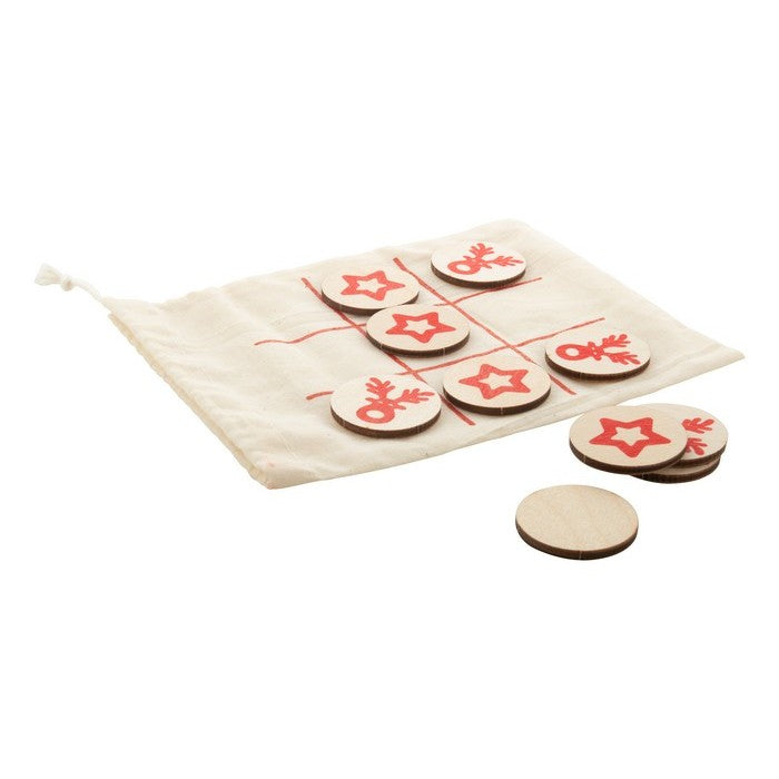 Joc tic-tac-toe, cu design de Craciun, din placaj de mesteacan cu 10 jetoane si punga de transport din bumbac., material: lemn+bumbac, dimensiune: 130×170 mm