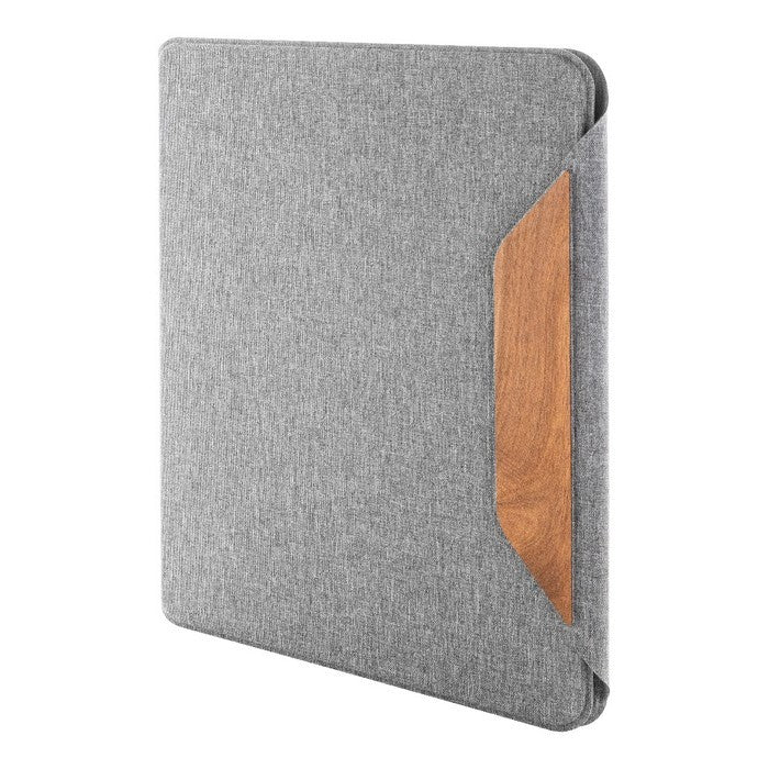 Mapa de documente, format A4, din poliester RPET, cu buzunare interioare multiple si inchidere magnetica cu detalii din lemn de nuc. Blocnotes cu 20 de foi dictando, din hartie reciclata., material: poliester reciclat+lemn, dimensiune: 242×315×20 mm