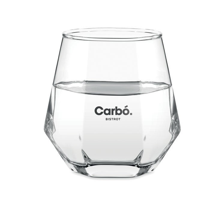 Pahar scurt in forma de diamant geometric inclinat. Pentru whisky sau alte bauturi spirtoase. Capacitate: 300 ml, dimensiune: 9,5 x 9,5 x 9cm, material: sticla.
