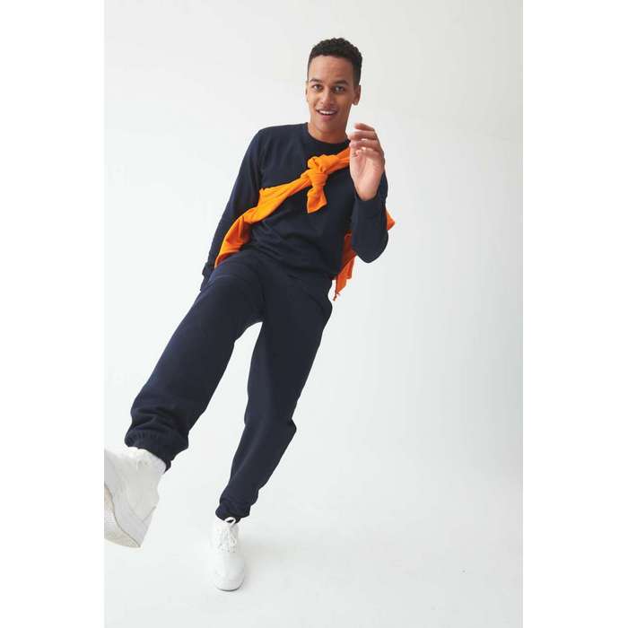 material: 80% bumbac filat cu inele, 20% poliester, 280 g/m2, marimi: S - 2XL, croiala lejera, manseta la capatul cracului, talie elastica cu snururi interioare, captuseala interioara din polar, buzunare laterale, eticheta detasabila, material cu fata din bumbac 100%