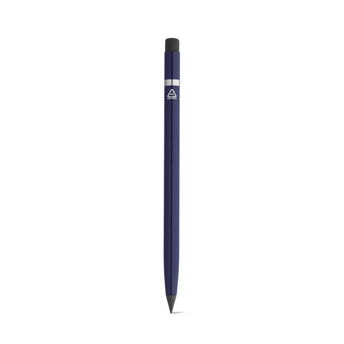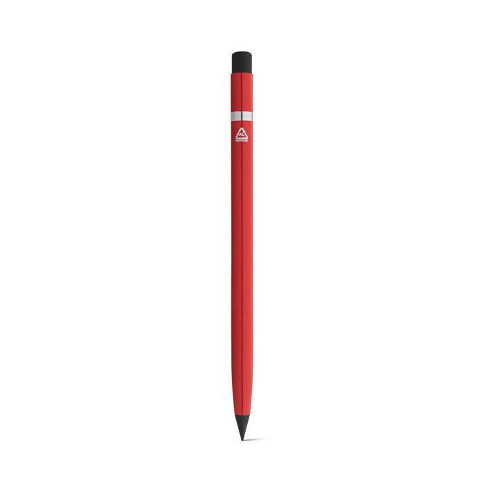 Pix fara cerneala cu corp din aluminiu 100% reciclat. Potrivit pentru utilizare pe termen lung, fara a fi nevoie de ascutire. Partea de sus contine o radiera care sterge cu usurinta ceea ce este scris, material: 100% aluminiu reciclat, 100% PE reciclat, dimensiune: ø8 x 150 mm.