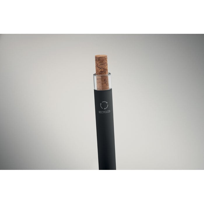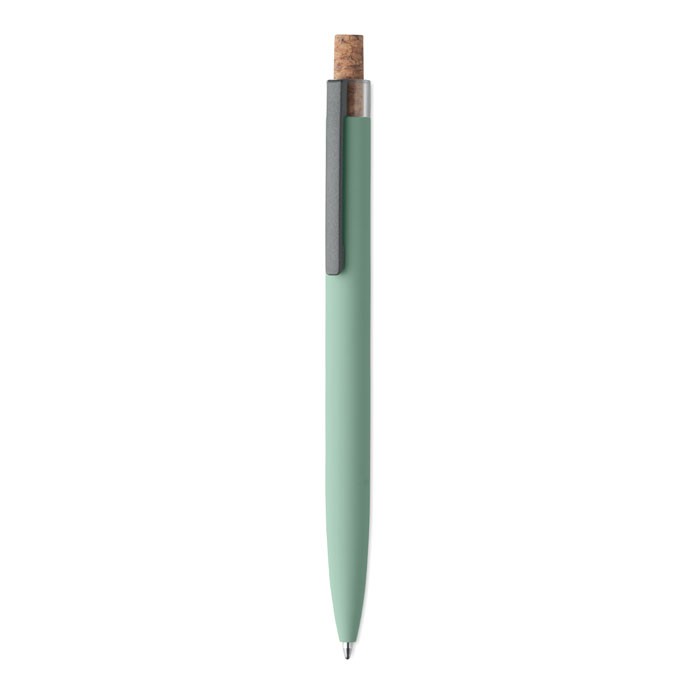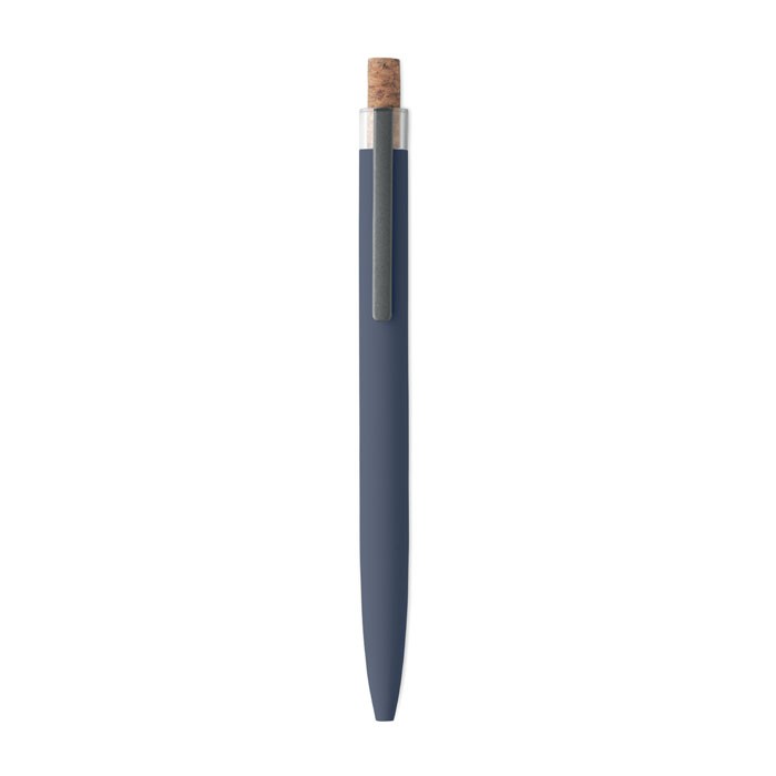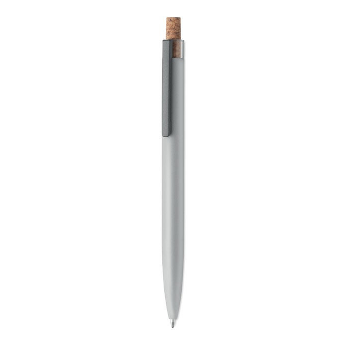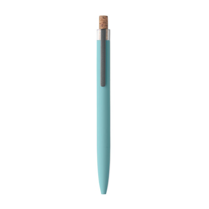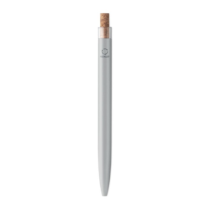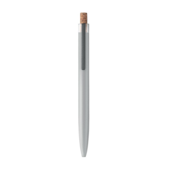 Pix din aluminiu reciclat cu buton din pluta si clips metalic. Scriere albastra, dimensiune: Ø1 x 14 cm, material: aluminiu reciclat