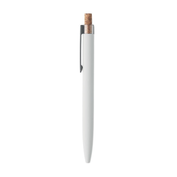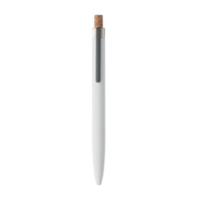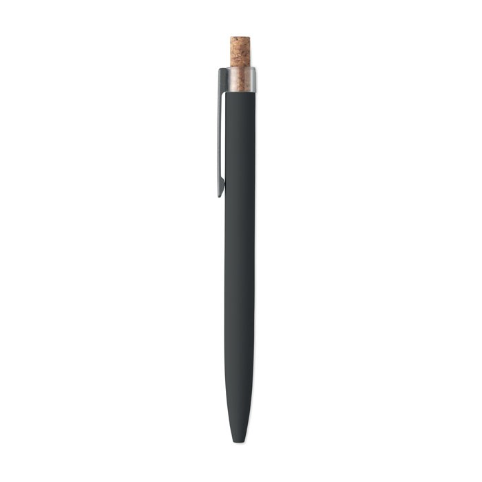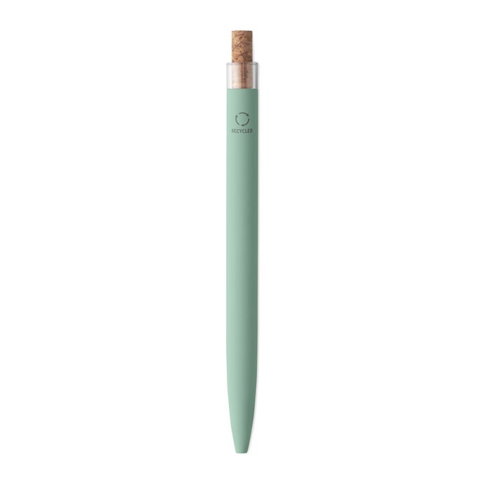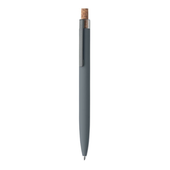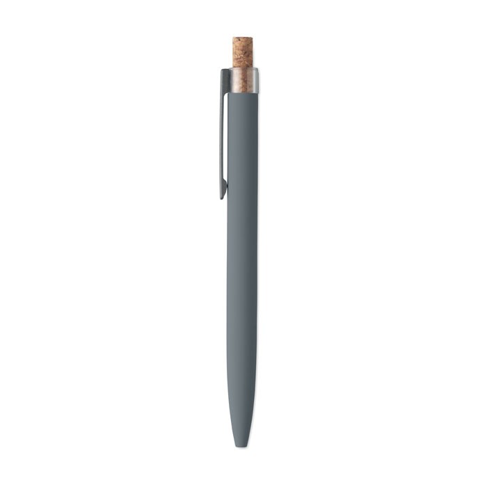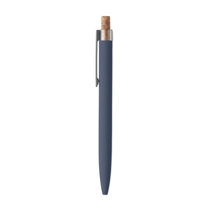 Pix din aluminiu reciclat cu buton din pluta si clips metalic. Scriere albastra, dimensiune: Ø1 x 14 cm, material: aluminiu reciclat