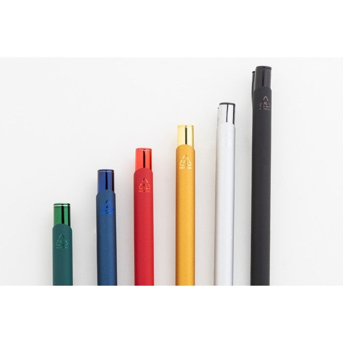 Pix din aluminiu reciclat, cu corp cauciucat si parti metalice lucioase colorate. cu strat special pentru gravare in oglinda, in ton cu partile metalice. cu mina albastra., material: aluminiu reciclat, dimensiune: ø10×137 mm