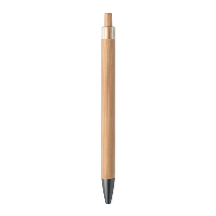 Pix cu mecanism, corp din bambus si clips metalic. Scriere albastra, dimensiune: 14 x 1 cm, material: bambus