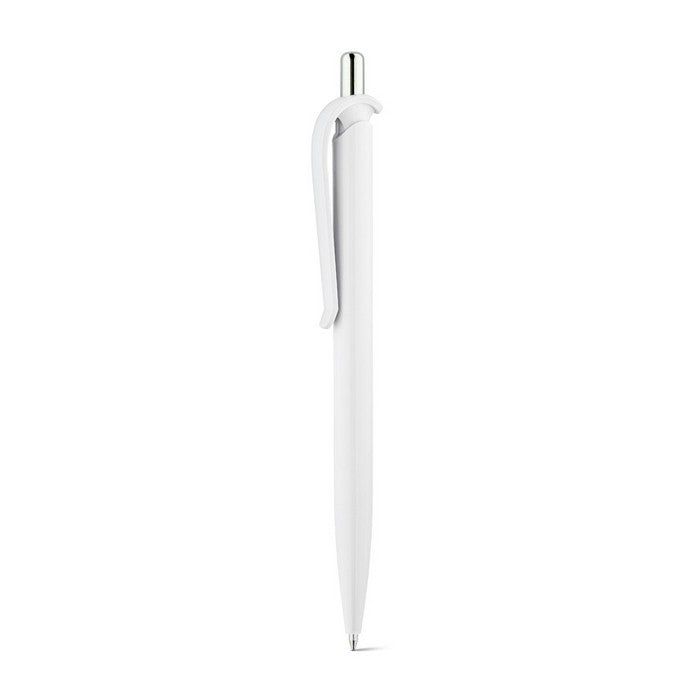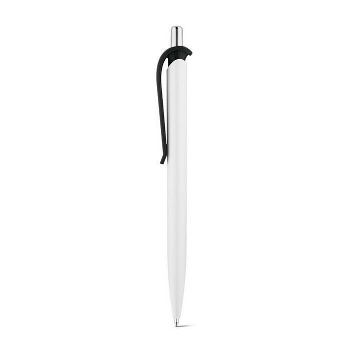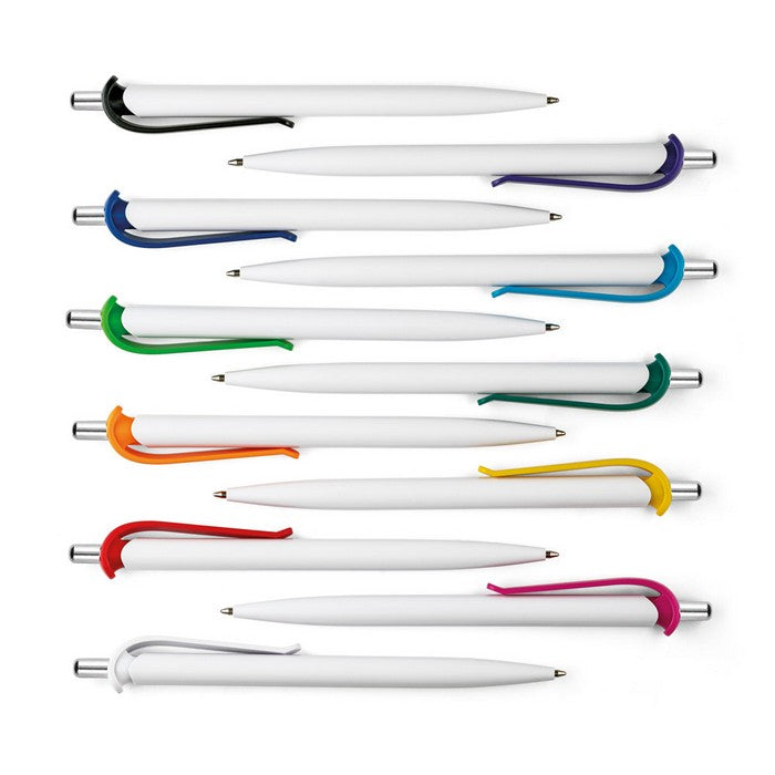 Pix alb cu clips color. Scriere albastra. Material: plastic ABS. Dimensiune: ø10 x 145 mm