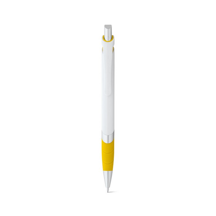 Pix cu grip antiderapant si clips colorat. Scriere albastra. Material: plastic. Dimensiune: ø13 x 140 mm