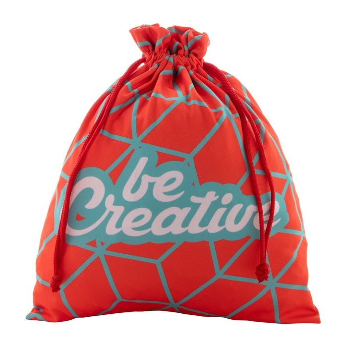Geanta cadou, cu snur, din poliester, realizata la comanda, cu snur colorat. Pretul include imprimarea prin sublimare integrala. MOQ: 50 buc., material: poliester, dimensiune: 150×200 mm