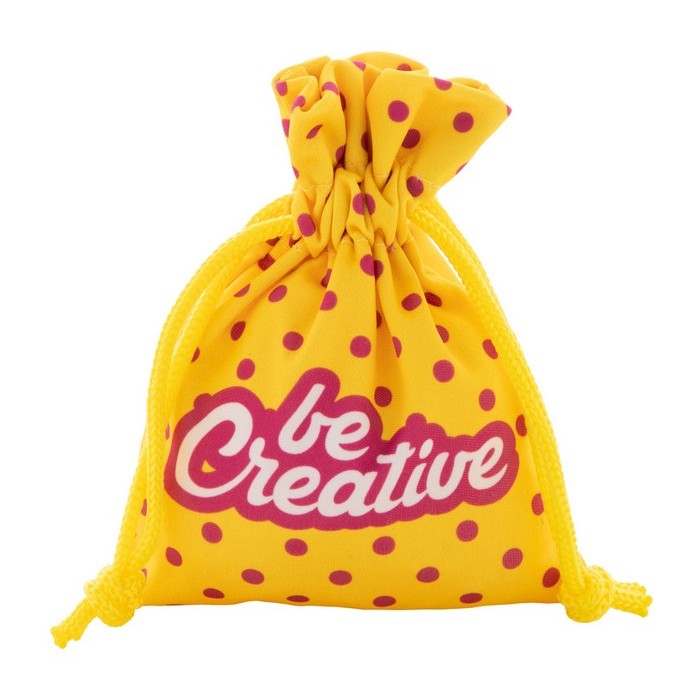 Geanta cadou, cu snur, din poliester, realizata la comanda, cu snur colorat. Pretul include imprimarea prin sublimare integrala. MOQ: 50 buc., material: poliester, dimensiune: 100×135 mm