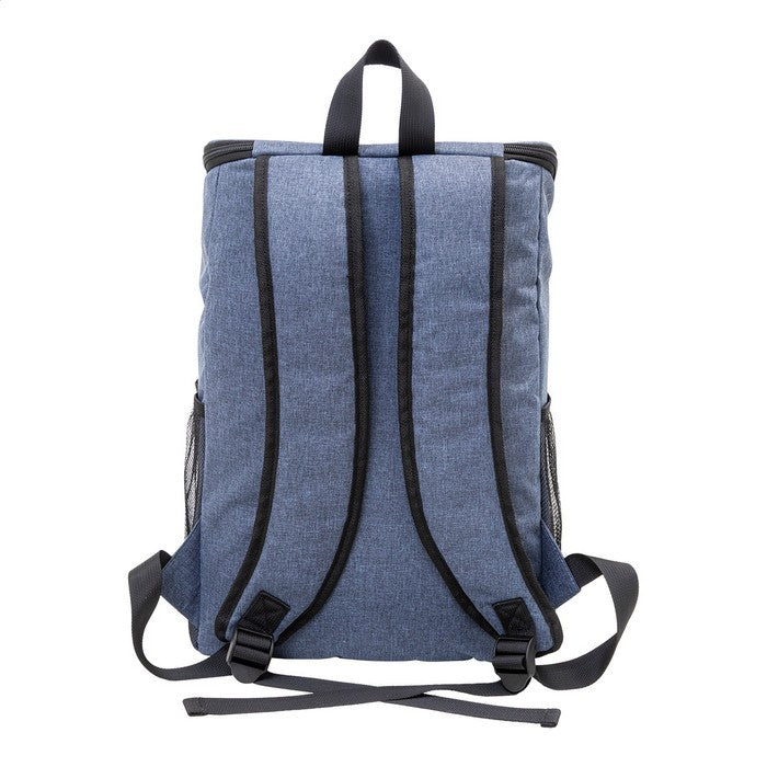 Rucsac frigorific, pentru picnic, din RPET, cu buzunar frontal cu fermoar si compartiment frigorific cu fermoar si captuseala PEVA. cu buzunare laterale din plasa, spate si bretele de umar captusite. Include tacamuri din PP si otel inoxidabil pentru 2 persoane: 2 farfurii, 2 cani, 2 furculite, 2 linguri si 2 cutite. Poliester 600D RPET, cu eticheta distinctiva RPET., material: 600D poliester reciclat+plastic (PEVA), dimensiune: 270×440×190 mm