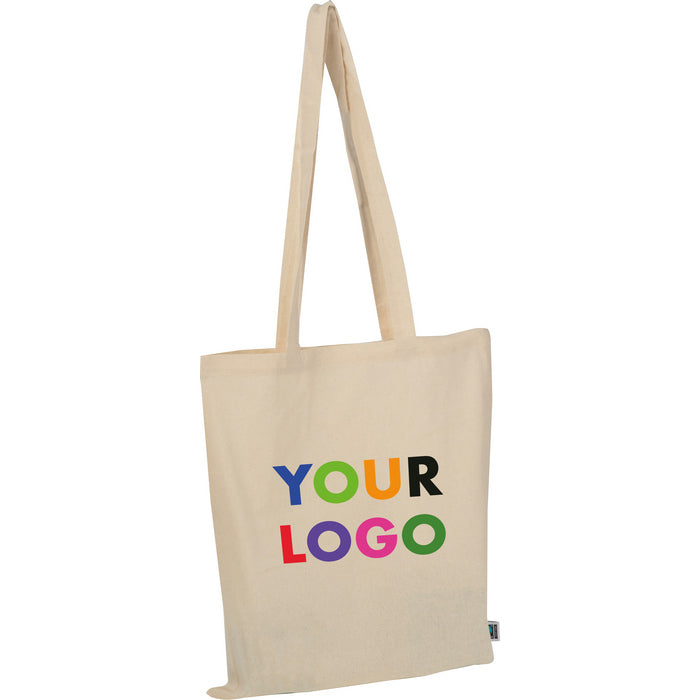 Sacosa din bumbac Fairtrade (140 g/m²) cu maner lung si eticheta Fairtrade.