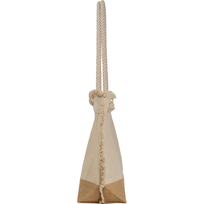 Sacosa de plaja din bumbac texturat Oeko-Tex® de culoare naturala cu baza de iuta si maner din snur. Perfecta pentru plaja sau piscina.