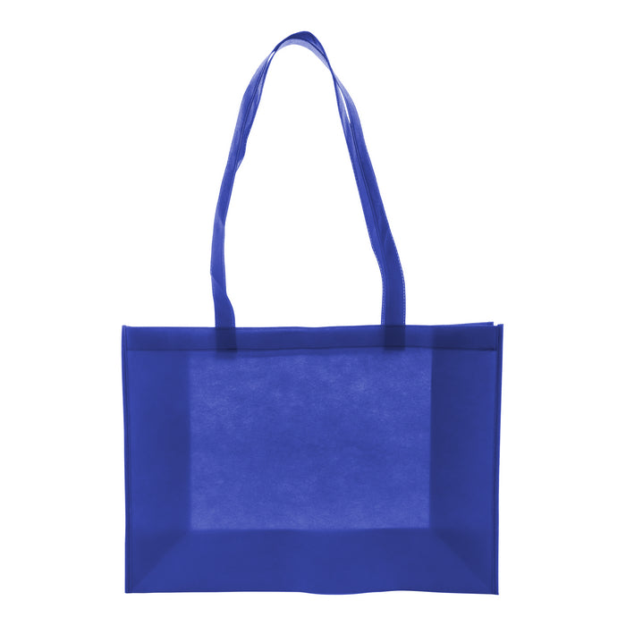 Sacosa de cumparaturi din RPET netesut, cu burduf si manere lungi, 80 g/m². Cu semn distinctiv RPET.
