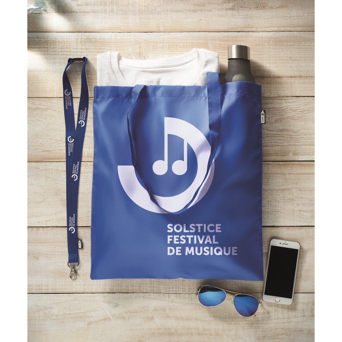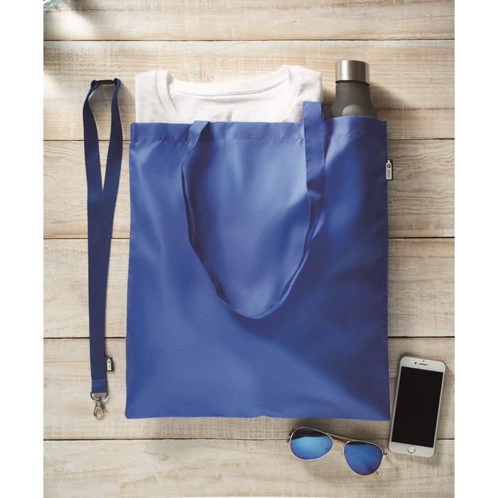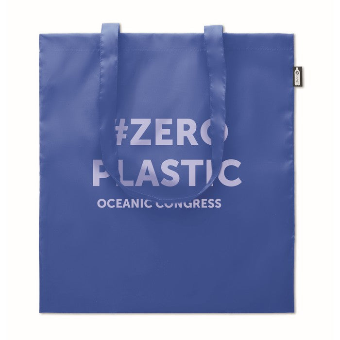 Sacosa cumparaturi din material reciclat 190T RPET cu manere lungi. Material prietenos cu mediul, realizat din sticle din plastic reciclate. Material: Pet. Dimensiune: 38 x 42 cm