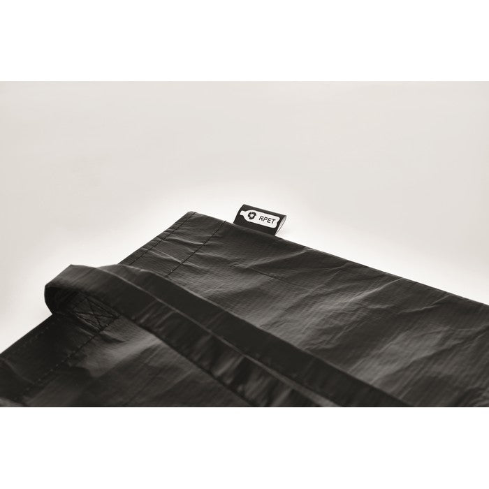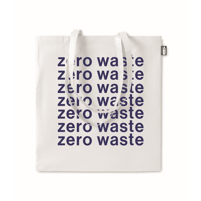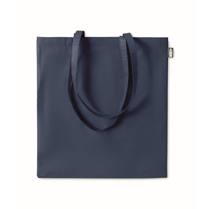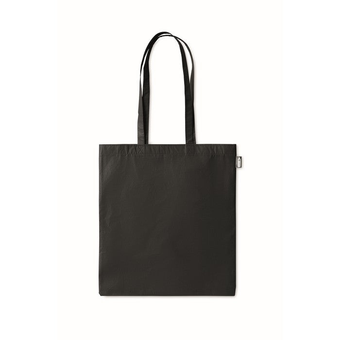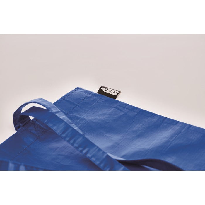 Sacosa de cumparaturi RPET laminat netesut, cu manere lungi. 100 gr/mp. Material: Rpet. Dimensiune: 38 x 42 cm