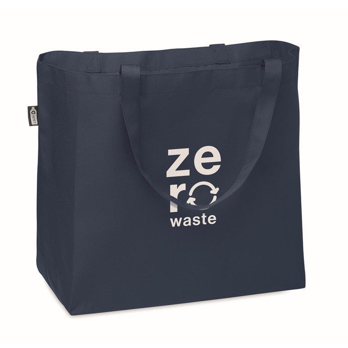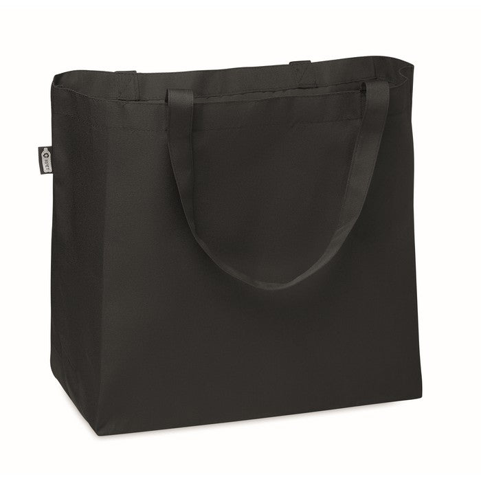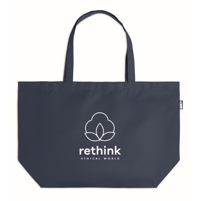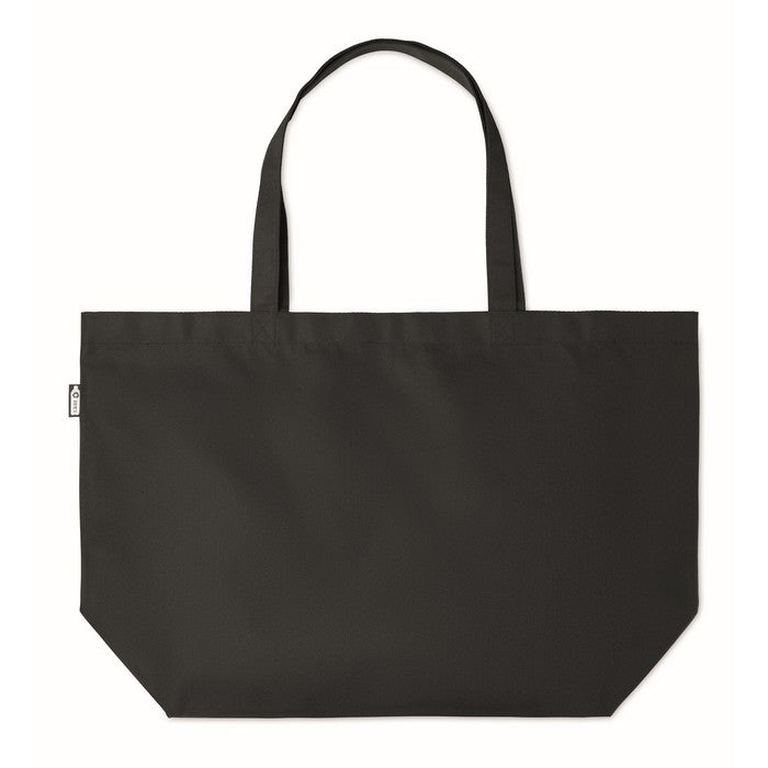 Sacosa mare cumparaturi sau geanta de plaja in 600D RPET cu manere lungi si clin pentru fund. Material: Polyester. Dimensiune: 56 x 18 x 36 cm