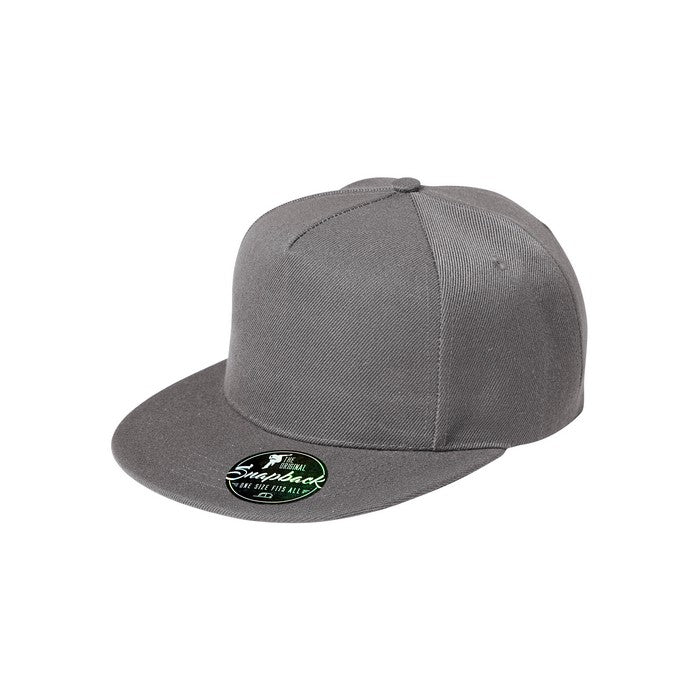 material: 340g/mp, Twill, 100 % bumbac, marime reglabila. Sapca cu cinci paneluri din bumbac, cozoroc plat cu sticker detasabil, panel frontal intarit, gauri de ventilatie brodate, marime reglabila cu ajutorul unei catarame din plastic in stilul retro.